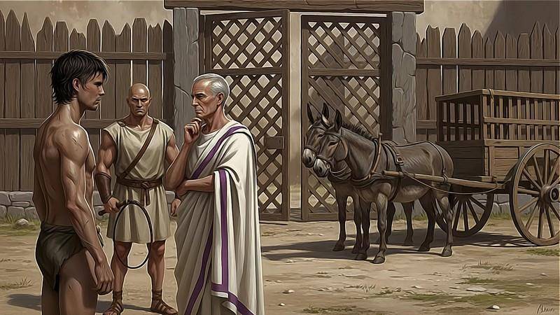 Вольноотпущеник поорал на Фуфидия за то, что тот загнобил столько рабов быстрее обычного и допустил смерть «грызунов». Потом пообещал доставить новых. Погрозил карами, если после этого каникула не заработает, как прежде в течение суток.