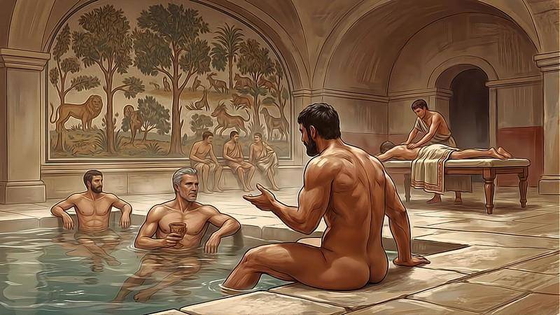 Потом Палемон натёрся маслом, и банщик-трактарор принялся скоблить его могучее тело стригилем, сгоняя грязь вместе с потом. Последовал его примеру и Луций. Зря что ли сюда пришёл?