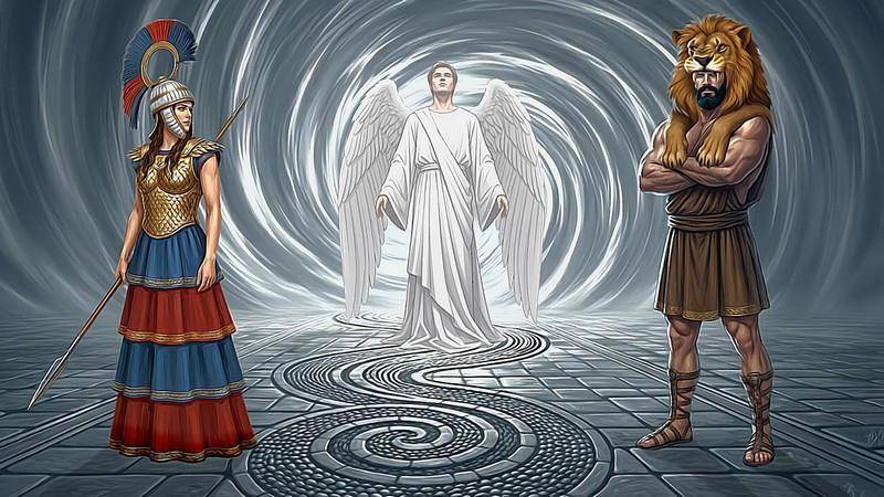 А потом померк неземной свет, в мир вернулись краски. Вновь проступили стены, украшенные росписью, на которой коренастый мужчина поражал из лука трёх мужей на пиршественных ложах. Снова появились стол и стулья.
