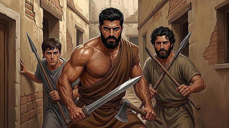 – Ты обвиняешься в убийстве римских граждан, – проговорил иринарх, – совершил ты сие злодеяние сегодня утром на дороге возле города. Есть свидетель. Отдай себя в руки правосудия, или будешь взят силой.