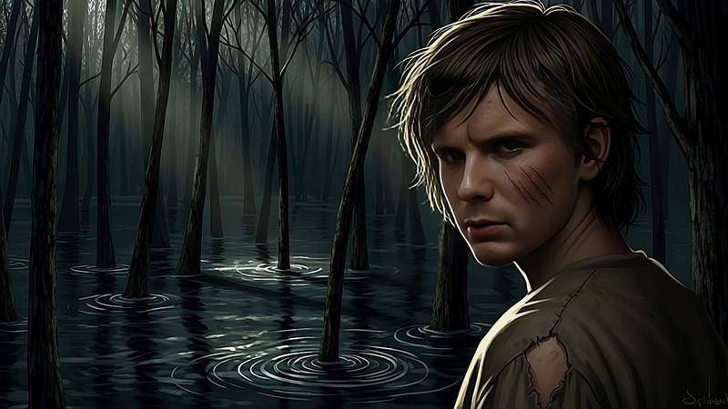 Влажный воздух наполнен запахами талого снега, прелой листвы и свежей хвои. Вода повсюду. Она струится между деревьев, порождая причудливые узоры волн, что разбиваются о чёрные корни старых елей. Затопленный лес полон звуков – громкое журчание воды перекрывает их, глушит почти все, но нет-нет да прорывается звонкая дробь дятла, или хриплое воронье карканье.