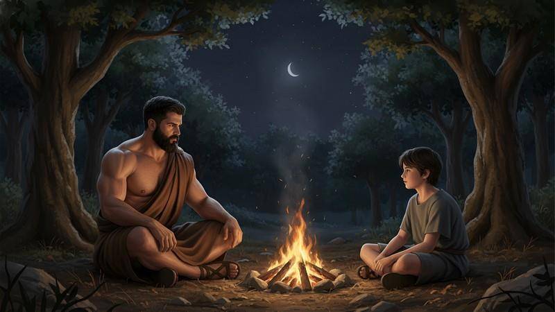 Здоровенный дядька, забравший его у работорговцев, назвался Палемоном. Он сидел напротив на коряге и задумчиво разглядывал своё немногочисленное имущество. Прежде оно бы восхитило мальчика, но ныне он смотрел на него отстранённо. Способности удивляться и радоваться ещё предстояло вернуться в его сердце.