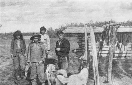 Заимка Байоково. Ее обитатели пожелали сняться с Сашей среди связок вяленой рыбы