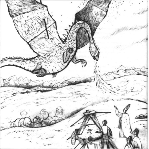 Первый выстрел баллисты не достиг цели. Стрела со свистом пролетела всего в нескольких футах над головой Добружа. Жак Леро, подгоняемый епископом, бросился перезаряжать баллисту. Его преосвященство сам встал к орудию. Тордье быстро оценил обстановку и приказал поставить две порожние повозки по бокам от повозки с баллистой, защищая последнюю от возможных попыток дракона перевернуть ее. Сюда же, к обозу, он направил оруженосцев и десяток гвардейцев. Второй половине отряда вместе с рыцарями воевода дал задание атаковать и отвлечь дракона, пока баллиста будет заряжаться.