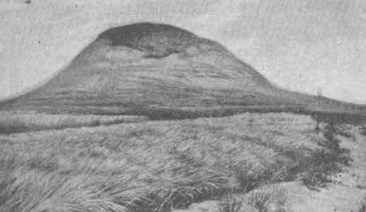 Потанин вспомнил холм у города Гуйхуачэн[5]. Это о нем местные монголы рассказывали, что здесь похоронена жена Чингисхана, которая оскопила его и бросилась в воды Желтой реки. Холм был высотой около 12 метров, насыпанный из местной серой глины, с очень крутыми склонами и плоской вершиной. Жители соседних деревень уверяли, будто насыпь в разное время принимает различные очертания. Утром она похожа на чашу, в полдень – на юрту, а вечером основание холма исчезает и вершина его как бы парит в воздухе. Потанин предполагал, что виновником необычайных превращений холма был мираж, давший местным жителям повод приписать холму чудодейственную силу и увязать его происхождение с древней легендой.