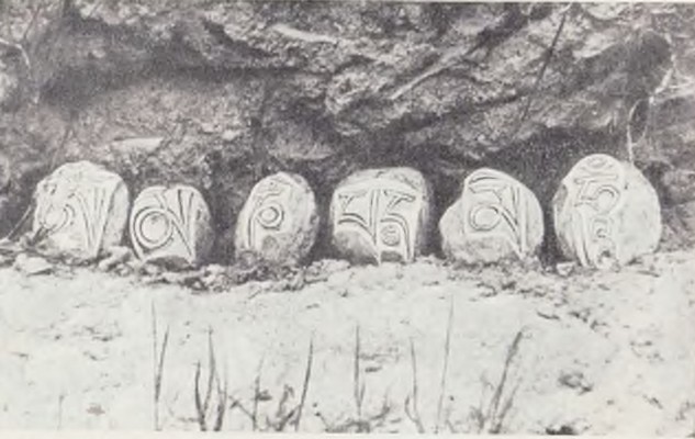 Рис. 21. Магическая формула «Ом мани падме хум» на камнях у дороги