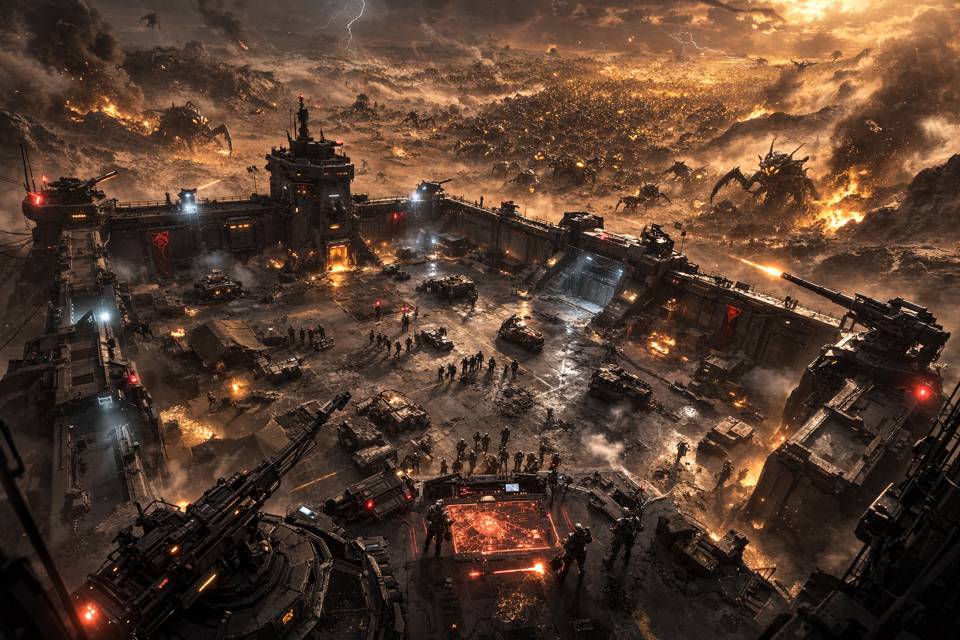 Итого имеем практически голые укрепления, около тысячи несыгранных Легионеров и приближающийся Прилив Жёлтого Роя, рассмотреть который из-за поднявшейся пыли не представлялось возможным. Да уж, чувствую, будет весело…