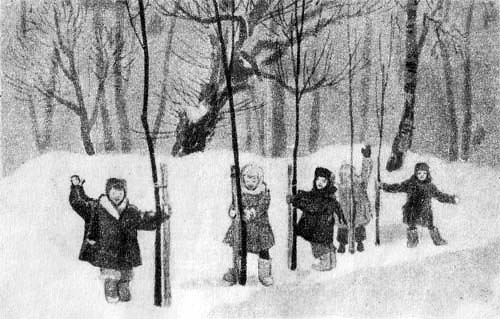 Позавтракав, все перешли в большую комнату, по стенам которой были развешаны в четыре ряда картинки, нарисованные детьми. Конечно, не все рисунки попали на эту выставку, а только самые лучшие.