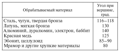 Рекомендуемые углы при вершине сверла