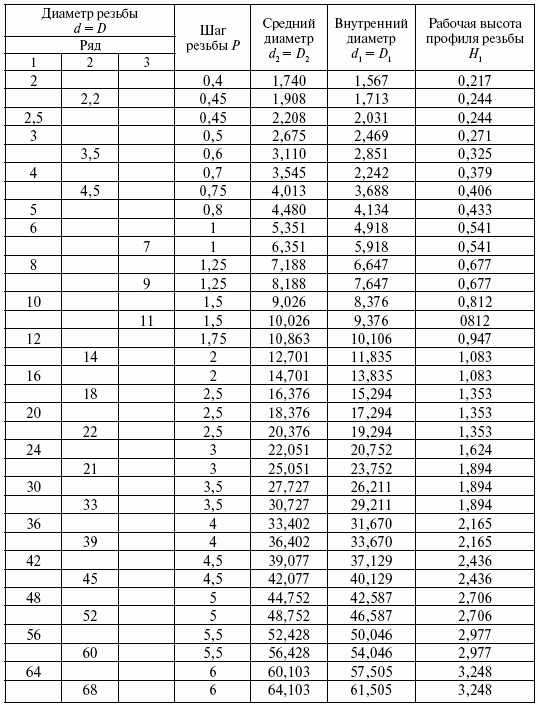Размеры обычной метрической резьбы, мм