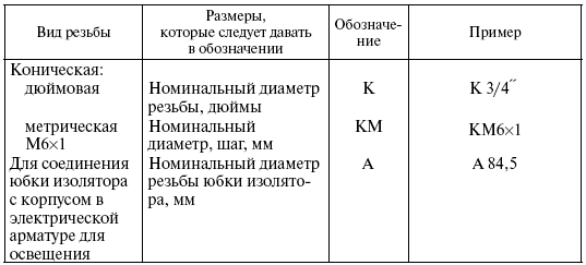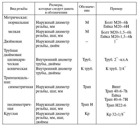 Обозначение резьб дано в табл. 15.