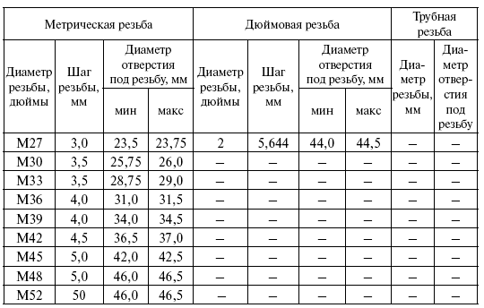 Диаметры отверстий и стержней под резьбу даны в табл. 16 и 17.