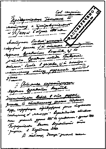 Это письмо будет передано Вам Вашим Помощником т. А.И. Васиным, у которого находятся подлежащие уничтожению черновые записи к письму. Содержание письма никому, кроме него, не может быть пока известно.