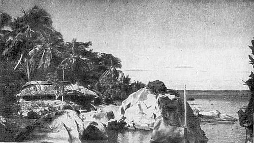Простившись с веселым губернатором, мы обошли превращенный в парк остров Дзаудзи. Перешли по дамбе на соседний остров Паманци. Проходим селение, носящее странное название Village de l'Abbatoire, т. е. «деревня бойни». Тут когда-то находилась бойня военного гарнизона. Аккуратные домики, крытые пальмовыми листьями. Стены тоже сплетены из листьев кокосовой пальмы. Чистые огороженные дворики, в которых посажены молодые кокосы, бонаны, манго. Дома утопают в тени раскидистых густых хлебных и манговых деревьев.