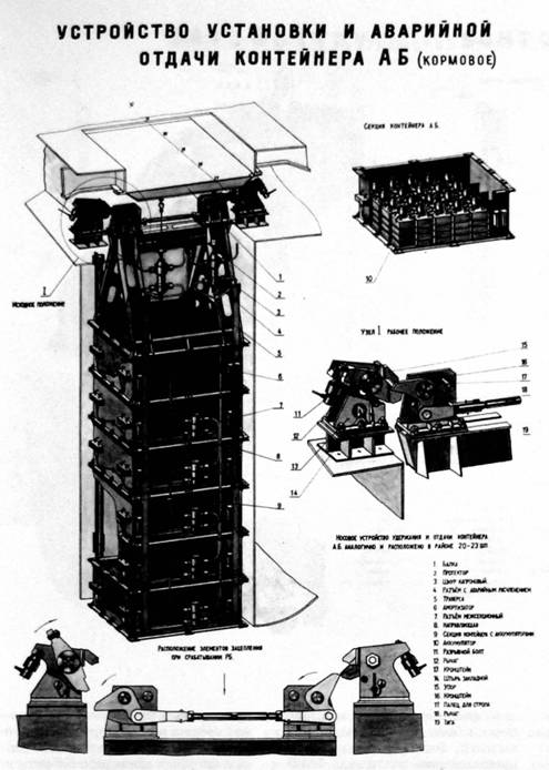 Специалисты бюро по устройствам под руководством А.Д.Озерова произвели необходимые расчеты и разработали оригинальные конструкции спускоподъемного, буксирного, якорного и швартовного устройств, входного люка и иллюминаторов.