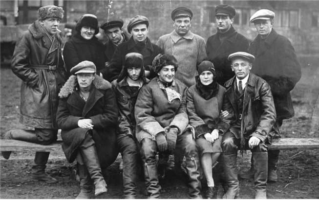 Корреспонденты на строительстве Магнитки. В первом ряду третий слева – Исидор Шток. 1931