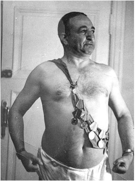 В коридоре привлекал внимание фотопортрет хозяина в белых трусах, явно купленных за границей и не похожих на российские «семейные», сатиновые и до колен. Выпятив голый торс, драматург перебросил, как портупею или наградную ленту, связанные друг с другом пионерские галстуки, на которых красовались высокие государственные награды. Так его и щелкнул безымянный фотограф.