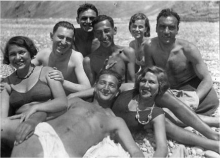На пляже. Исидор Шток – в первом ряду. Начало 1930-х