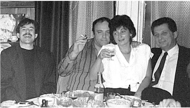 Павел Чухрай, Петр Штейн, Ирина Шток, Юрий Синяков у нас дома на Красноармейской улице. 1993