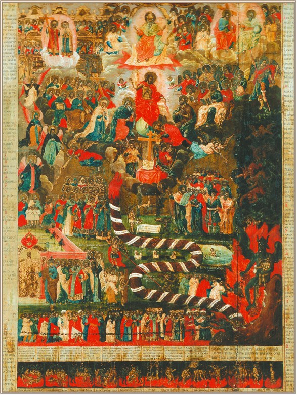 Новгородские иконописные изображения Страшного суда дают нам возможность заглянуть в самые глубокие тайники духовной жизни «святой Руси» XV и XVII вв., проникнуть в самый суд ее совести. И ценность этих ярких, красочных изображений повышается тем, что в них человеческая совесть иконописца стремится угадать Божий суд не о каком-либо частном явлении, а о человечестве, как целом, более того, – о всем мире. Те образы, которыми он олицетворяет этот суд, превосходят глубиной и мощью самые вещие из человеческих слов.
