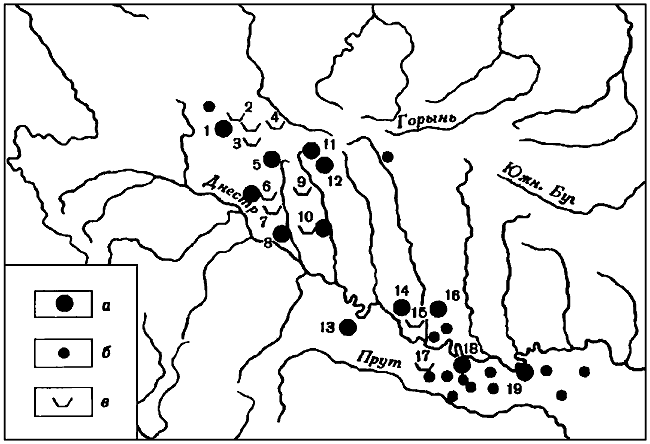 Все же территорию липицкой культуры следует несколько расширить: она, помимо левого берега Днестра и его левых притоков, охватывает также земли по правобережью Днестра, доходя до Прута в пределах Черновицкой обл. (карта 17). Вопрос о территории липицкой культуры усложняется еще и тем, что в ее ареале встречаются памятники других синхронных ей культур и наблюдается смешение с пшеворскими элементами, что затрудняет культурную атрибуцию памятников.