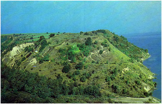 Общий вид зарубинецкого городища Монастырек на Днепре.