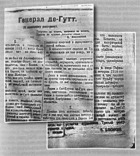 Статья Я. Г. Блюмкина «Генерал де-Гутт. (К эссенскому расстрелу)», опубликованная в «Правде» 14 апреля 1923 года