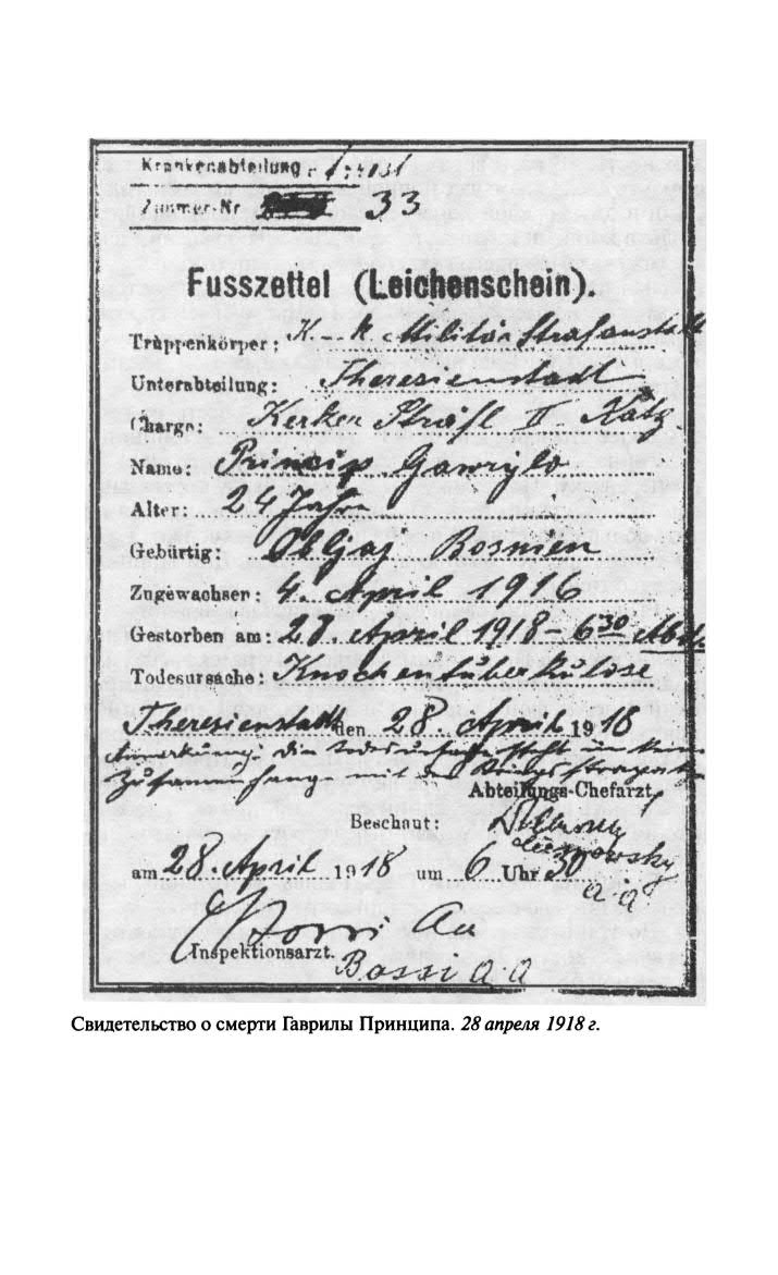 «На хорошем немецком языке, – вспоминал доктор, – он много мне рассказывал о своей семье, о своей короткой жизни, но никогда не упоминал людей из «Черной руки», которые, по мнению австро-венгерской тайной полиции, подтолкнули его к этому делу».