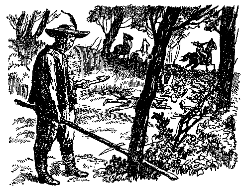 Услыхав мадьярскую речь, всадник смело направил коня к кусту, откуда донёсся голос, но в ту же минуту увесистая дубина угрожающе разрезала воздух. Конь всадника шарахнулся в сторону.
