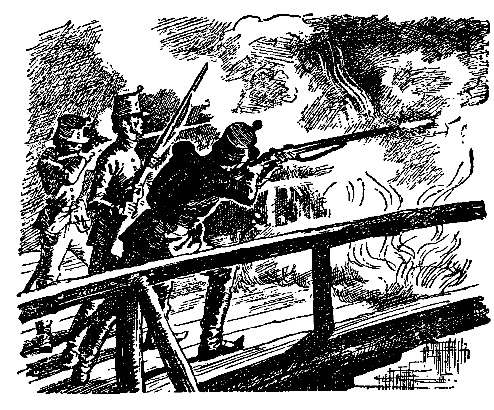 Опомнившиеся хорваты начали палить из ружей, но было поздно. Пламя охватило середину моста, а мнимые разведчики с факелами в руках подвигались вперёд. Пламя следовало за ними по пятам.