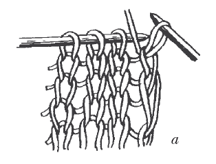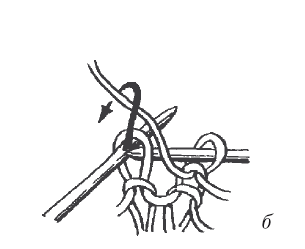 Рисунок 20, а, б. «Бабушкина» изнаночная петля