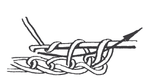 Так образуется полустолбик, самый низкий из основных приемов вязания. Далее вводят крючок последовательно в каждую следующую петлю цепочки и протаскивают рабочую нитку через петлю цепочки и петлю, находящуюся на крючке.