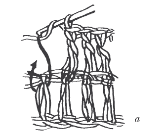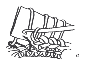 Рисунок 37, а – в. Первый способ вязания бахромы