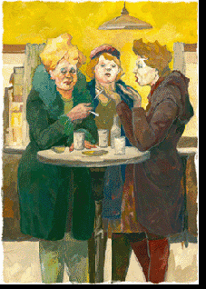 А вот за столиком дамы постарше. Хотя темы у них другие, работа притирки идет тем же самым чередом: