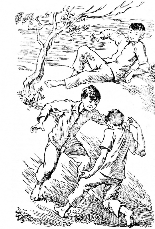 Я обхватил Быоя поперек туловища и подумал: «Нет у меня, как у тебя, красного галстука, в этом я тебе проиграл, по уж на лопатки тебе меня никогда в жизни не положить!». Но сколько мы ни боролись, все шло на равных. Мы оба уже устали. Неожиданно Быой опустил колено, я сразу здорово пнул его в живот и, обхватив руками за пояс и за шею, пригнул его голову книзу. И тут моя рука, державшая его за пояс, нащупала на нем что-то мягкое, податливое и круглое, совсем как огромная пиявка. «Пиявка, пиявка, в тебя впилась пиявка!» – закричал я и отпустил его. Быой, воспользовавшись этим, тут же обхватил меня поперек спины и бросил на землю. Едва поднявшись, я завопил: «Тебе в бок впилась большая буйволиная пиявка!». Оказалось, это и на самом деле пиявка, из тех, какие обычно кусают буйволов. Наверное, она прилипла к Быою еще тогда, когда мы купали буйволов на озере, она уже вдоволь насосалась крови и стала величиной с большую улитку. Мы нашли щепочку, зажгли ее и подпалили пиявку, а потом приложили к ранке подорожник.
