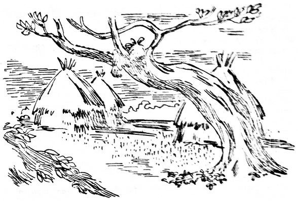 А кто сравнится с Шеу в умении ставить силки на птиц?! Вон на том хлебном дереве у меня поставлены силки для птичек-белоглазок. Это Шеу мне их сделал. Да и все остальные силки, что есть теперь у меня, он сделал.