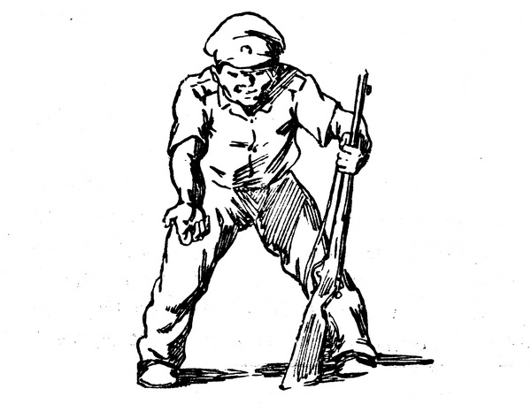 Почему мальчишка так уверен в себе? Может, в деревню уже пришли партизаны? Наверняка это так, иначе чем объяснить его наглость? И, должно быть, их много, раз они появились средь бела дня, ничего не побоявшись. Ну нет, с него, с Шао, этих встреч хватит. Однажды они уже гнались за ним: на его каске хорошо заметен след их пули...
