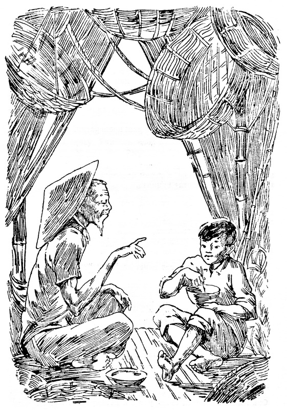 Иногда мы с ним до поздней ночи засиживались за такими разговорами, уже летела обратно в гнездо выпь, а мы все говорили и говорили. А какими вкусными клубнями лотоса он меня всегда угощал! Всякий раз, приходя к нему, я съедал все, что было припасено в маленькой корзиночке. Правда, дедушка Той не позволял мне есть сразу помногу. Он отщипывал от клубня по кусочку и давал мне.