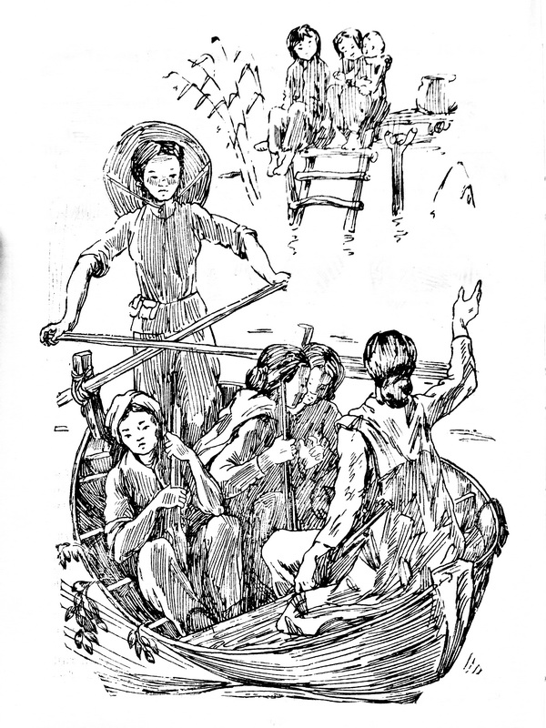 Зунг выглянул в окно – ночь черная-пречерная, ничегошеньки в ней не видно, потом снова посмотрел на Лан: так жалко сестренку! Что же делать? Ах если бы была тут мама!