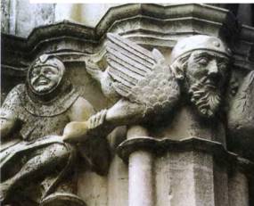 Фрагмент капители монастыря Сантес Креус, включавшего части рези денции короля Арагона Альфонса I по прозвищу Воитель, который взошел на престол в 1104 г. и запомнился как герой реконкисты.