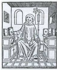 Св. Бернар (гравюра 1495 г.). Святой сыграл решающую роль в становлении тамплиеров для которых он специально написал Восхваление нового рыцарства, считая рыцарей необходимой силой для успеха движения крестоносцев.