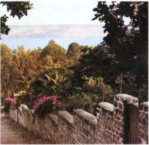 Вид на Тивериадское озеро со стороны одноименного городка, который, как и другие населенные пункты, возникшие на его берегах, такие как Капернаум, Магдала и Вифсаида, стали местом действия значительной части евангельской истории. Городок естественно, не выглядел таким спокойным и умиротворенным во времена Раймунда III.