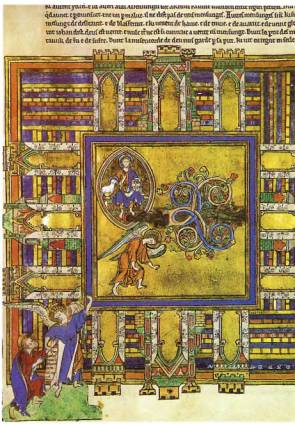 Небесный Иерусалим (миниатюра из Апокалипсиса XII в.). (В рамке на с. 34 цитата из этого произведения, описывающая Иерусалим.) Представление, сложившееся в народе о «Святом городе» и навеянное наивными религиозными и символическими убеждения, ни о «сокровищах Востока», было весьма далеким от суровой действительности, с которой ежедневно приходилось сталкиваться христианским королям и рыцарским орденам.