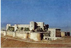 На рис. крепости Крак, выполненном Лоуренсом Аравийским, хорошо видны ее мощные оборонительные стены.