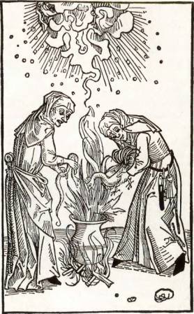 Две ведьмы готовят магический настой (из работы У Монитора, опубликованной в 1489 г.).