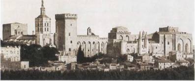 Впечатляющий вид на Авиньон, бывшей резиденции пап начиная с Климента V (1305-1314) до Григория XI (1310-1318), который восстановил папский престол в Риме за год до смерти. Этот исторический отрезок времени был внимательно изучен французским историком Этьеном Балюзом в его работе Жизнь авиньонских пап (1693), вместе с которой возобновилась дискуссия о роли Климента V в деле тамплиеров.