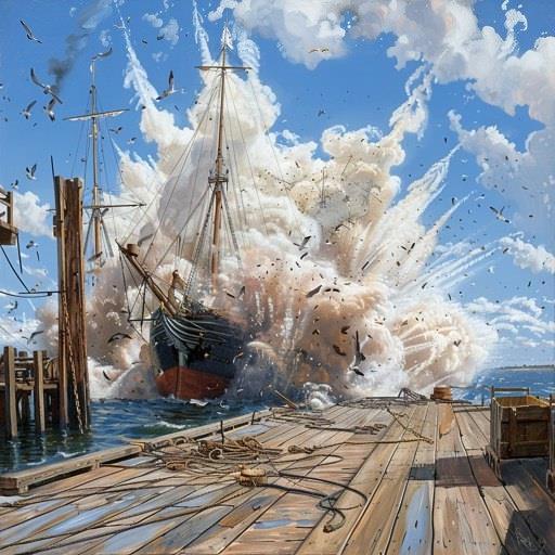 Скрип. Хлопок. Вспышка… Порт и десяток ходовых кораблей, стоящих рядом друг с другом вспыхнули, словно спичка.