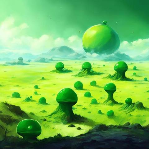 Мир пурпурных тонов, некогда имитирующий оазис на лазурном берегу. Ныне сочащийся соками едкой фиолетовой кислоты земля, уничтожающая сама себя. Жидкость вырывалась в виде миниатюрных гейзеров и «пота», захватывая всё вокруг. Растения, деревья, скалы, океаны, облака и животных тварей. Больше там не имелось безопасного места.