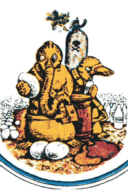 Все млекопитающие давно перешли с яиц на молоко, но супруги Утконосы предпочитали и то и другое. Мало ли какие придут времена, нужно прежде всего думать о потомстве. И они думают о потомстве: откладывают яйца, а потом выкармливают детей молоком. (А вдруг не станет ни молока, ни яиц? Не забывайте, что атмосфера становится ядовитой.)