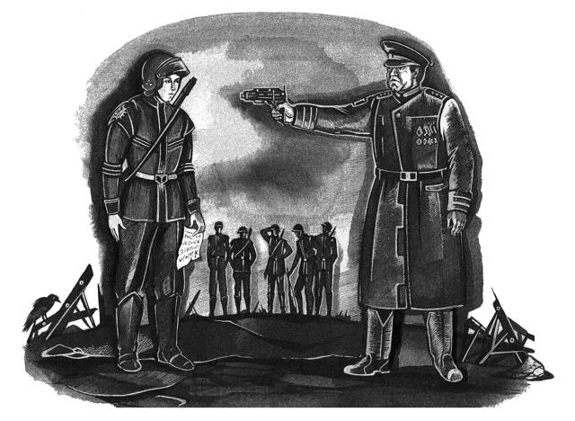 Иммолато подошёл к голографической панели и нажал на кнопку вызова. Над консолью выросло трёхмерное изображение худощавого человека в белой генеральской форме. Хонориус Хонорик держался надменно, высоко задрав голову и идеально выпрямив спину. Его утончённое лицо с небольшой бородкой сейчас выражало презрение ко всем вокруг – к Иммолато, к мятежникам, к идиотам-солдатам. На груди генерала висело множество орденов и медалей, а за его спиной струился красный плащ.